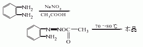 1.由鄰苯三胺與亞硝酸鈉反應(yīng)而得。將鄰苯二胺加入50℃水中溶解,再加入冰醋酸,降溫至5℃,加入亞硝酸鈉攪拌反應(yīng)。反應(yīng)物漸漸變成暗綠色,溫度升至70-80℃,溶液變?yōu)榻奂t色,于室溫放置2h,冷卻,濾出結(jié)晶,用冰水洗滌,干燥得粗品,將粗品減壓蒸餾,收集201-204℃(2.0kpa)的餾分,再用苯重結(jié)晶,可得熔點(diǎn)為96-97℃的產(chǎn)品,產(chǎn)率80%左右。曾有報(bào)道用亞硝酸鈉處理多菌靈的縮合廢水而得副產(chǎn)物苯并三氮唑。